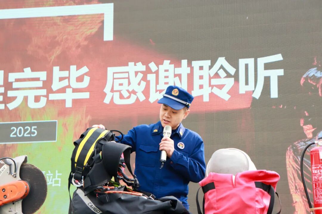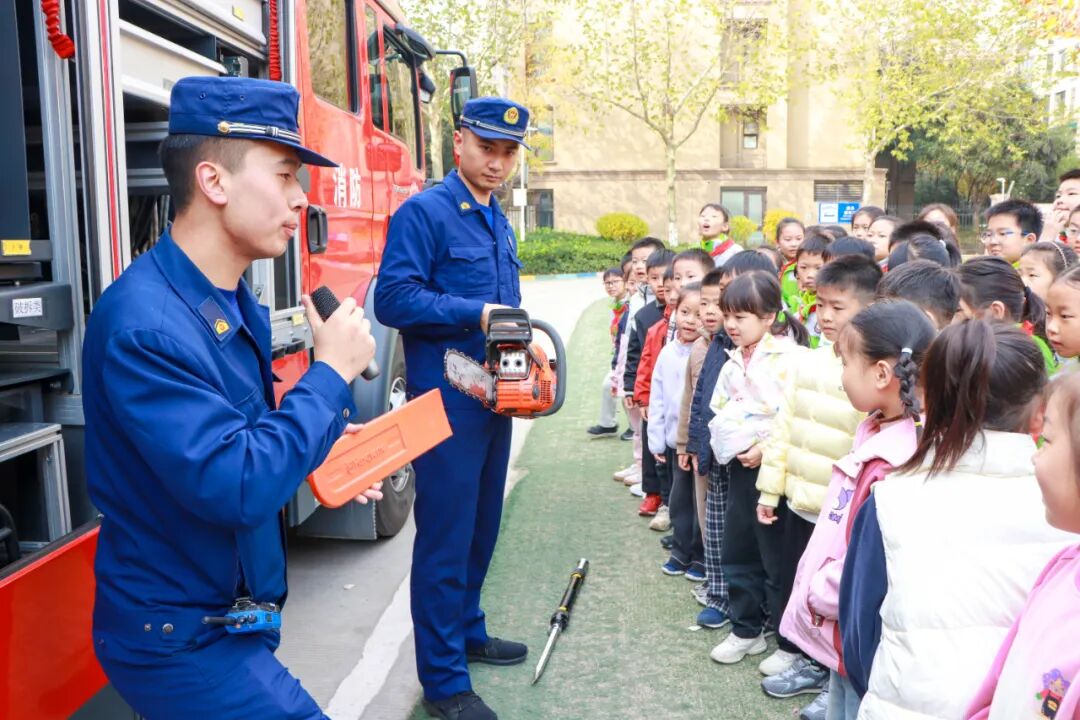 同学们围在一旁听得津津有味,不时发出阵阵惊叹,他们轻轻触摸装备,近距离感受消防设备的硬核魅力。