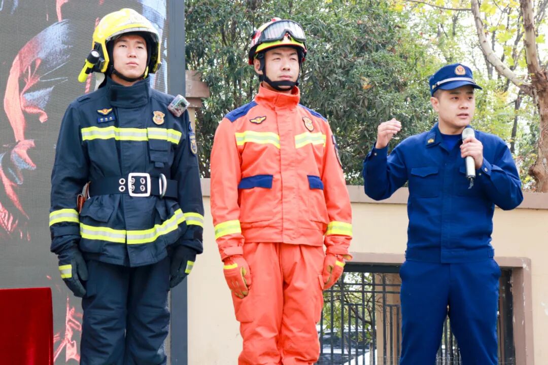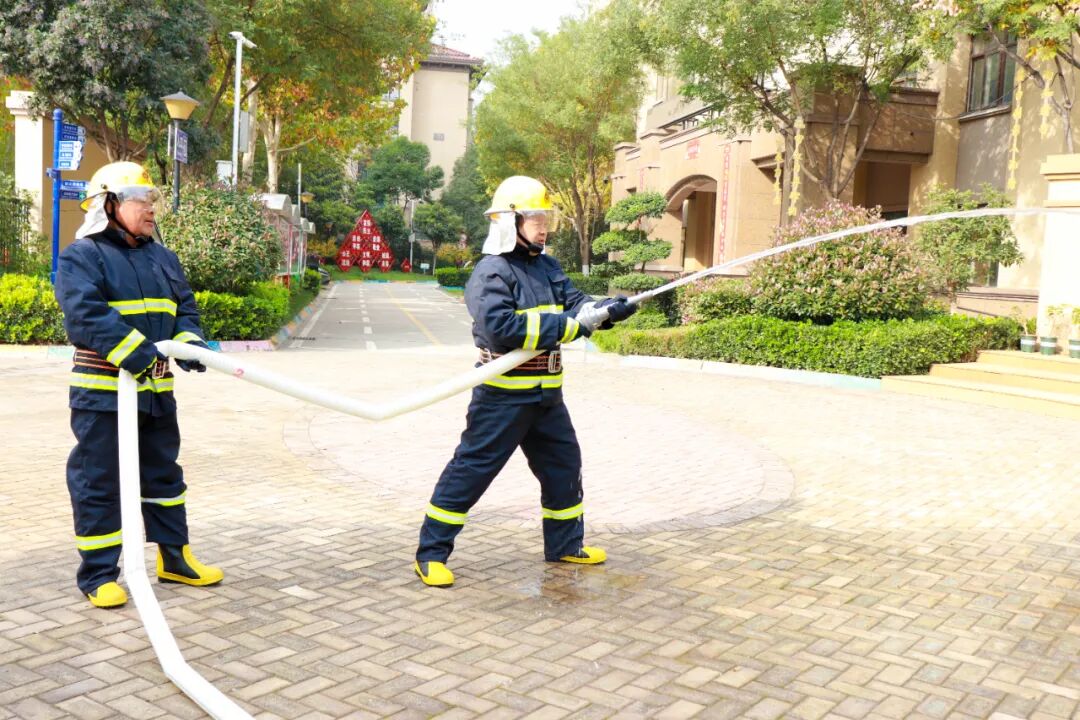 学校消防志愿队更是上演了精彩的技能展示,快速穿戴战斗服、精准抛投水带、熟练开启水阀、端枪“灭火”,一系列动作规范流畅。消防队员对其表现进行专业点评与指导,进一步提升了学校微型消防站的应急处置能力。