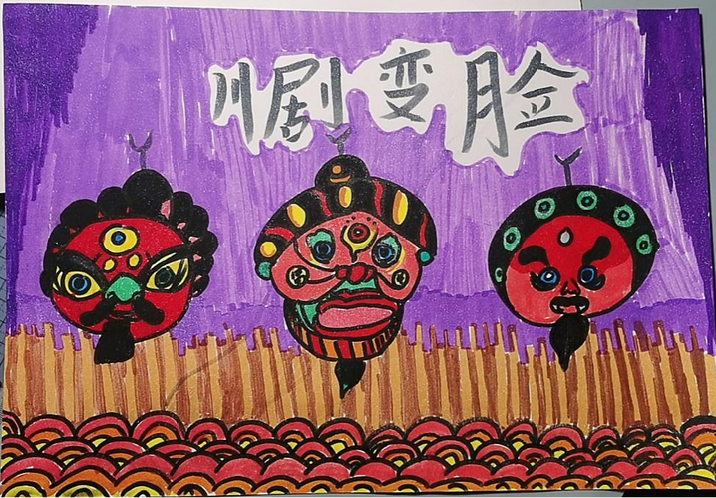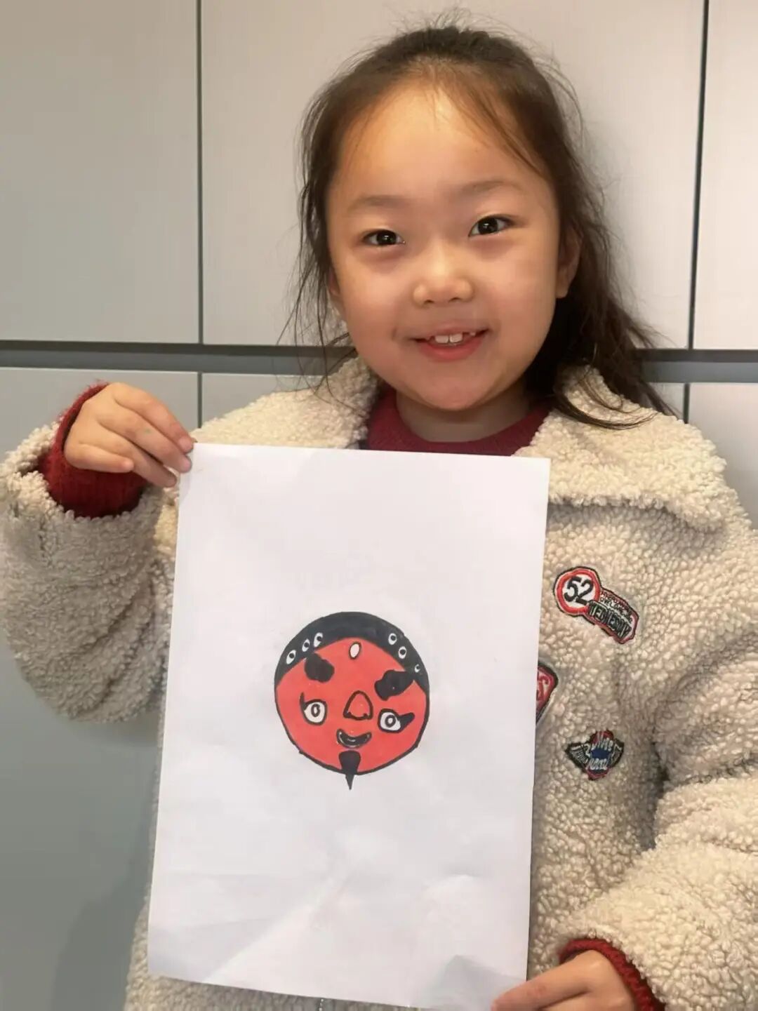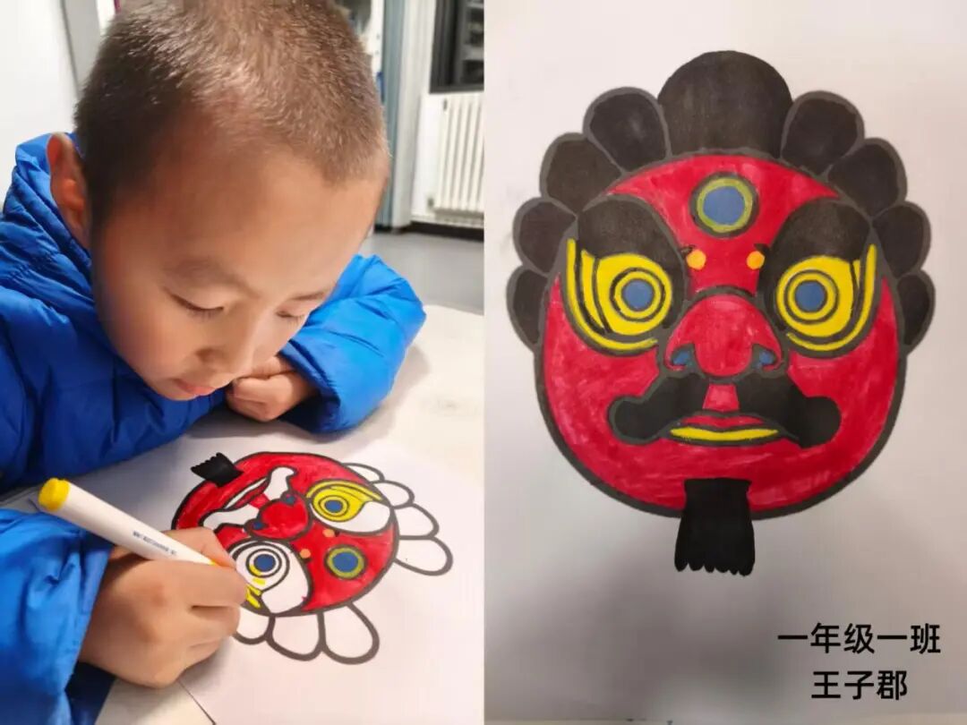 活动中,从一年级萌娃到六年级学子,纷纷化身 “脸谱创作者”:低年级学生为脸谱线稿添上缤纷色彩,点缀出童趣满满的小图案: