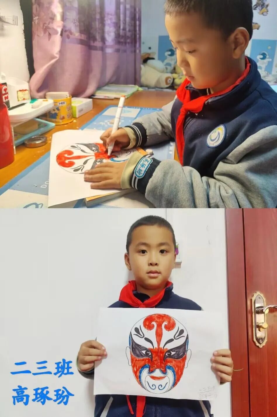 高年级学生自主设计脸谱造型与纹样,还以 1-2 句简介为作品赋予生动故事…… 不同学段的创意在同一主题下交融,让戏曲脸谱呈现出或清新可爱、或灵动传神、或富含深意的多元风貌。