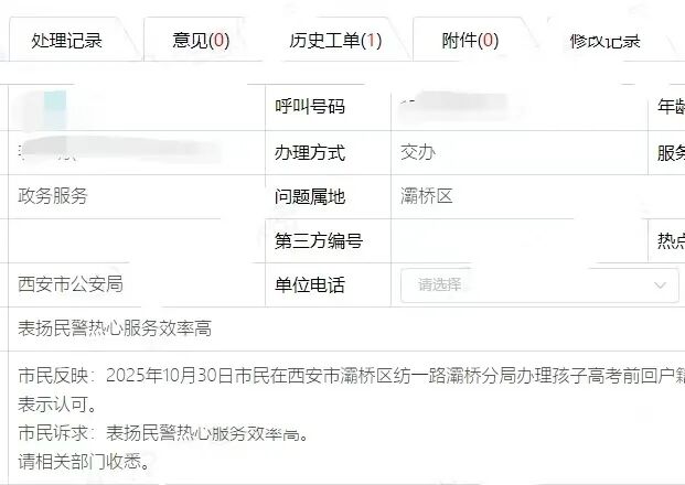 “孩子要高考了,户籍章还没盖,急死我了!”10月30日,一位家长匆匆来到灞桥分局治安大队,焦急地咨询户籍业务。全国高考报名在即,时间紧、流程不熟,家长心里没底。了解到群众的难处后,治安大队民警刘磊、辅警李楠耐心讲解流程,全程引导办理,每一个环节都细致把关,最终高效完成了业务办理。“没想到这么快就办好了,两位警官特别负责,真的很暖心!”事后,市民特意致电12345,为民警的高效与热情点赞。