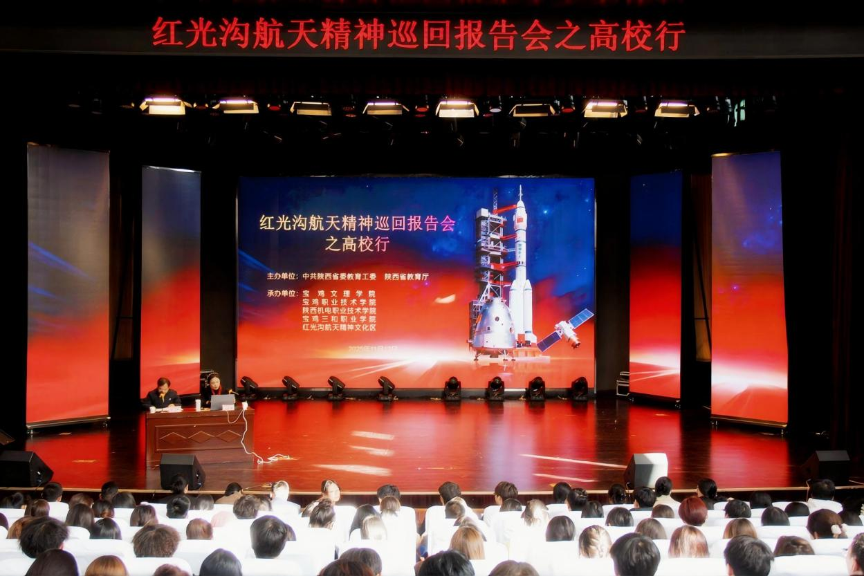 揭牌仪式后,由省委教育工委、省教育厅主办,宝鸡文理学院、宝鸡职业技术学院、陕西机电职业技术学院、宝鸡三和职业学院、红光沟航天精神文化区承办的红光沟航天精神巡回报告会之高校行活动在该校高新校区博文楼报告厅举行。王嘉源以《走进航天 感悟精神》为题作专题讲座,她结合建国初期国际国内形势,讲述航天科研工作者在偏远山区不惧艰难、锲而不舍作出令人瞩目的中国航天奇迹,以英模群像与鲜活案例展现了老一辈航天人的卓越智慧和坚韧不拔的精神,激励着广大青年学子以青春之力书写科技强国的时代答卷。