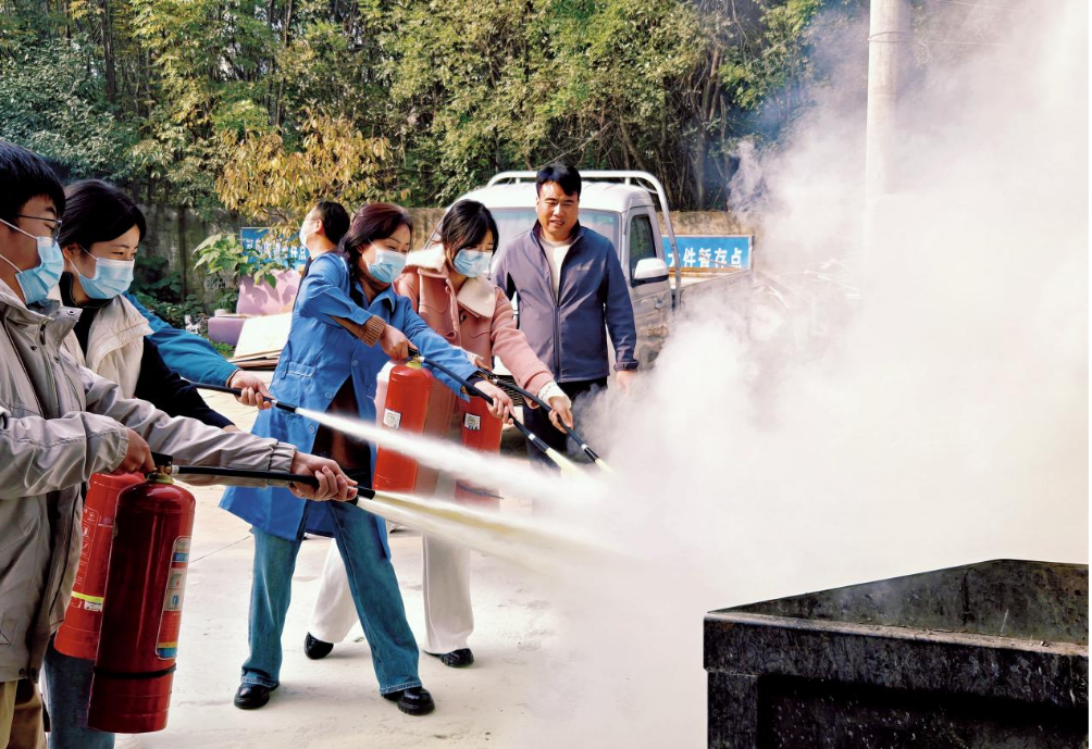 培训环节采用理论讲解、实景实操与沉浸式体验相结合的模式。消防宣讲员讲解火灾报警流程、初期火灾扑救原则及火场逃生技巧,分析宿舍安全用火用电等常见隐患。学生在指导下分组学习灭火器“提、拔、握、压”四步操作法,,并在模拟油盆火场景中进行实际灭火练习,掌握灭火要领。模拟烟雾逃生体验馆内,学生在工作人员引导下按照低姿弯腰、湿毛巾捂口鼻、贴墙前行等要求快速有序撤离。活动还设置消防服和防烟面罩的正确穿戴、消防知识有奖问答,消防车、排烟机、切割锯、液压剪等救援设备展示等互动环节。
