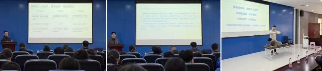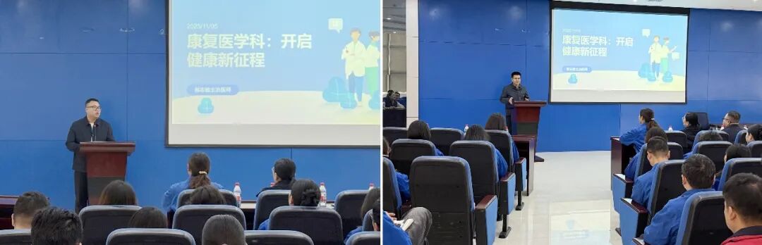 随后,康复医学科郝志敏主治医师围绕康复科核心治疗病种及特色治疗技术展开详细讲解。郝医生结合职场人群常见健康问题,重点介绍了颈肩腰腿疼康复、神经康复、运动损伤康复等核心病种的诊疗范围,同时对介入治疗、物理治疗、康复训练等特色技术的原理、优势及适用场景进行了通俗化解读,让职工对康复医学有了更全面、深入的认识,了解到许多看似“小毛病” 的健康问题均可通过康复治疗得到有效改善。针对职场人群高发的颈肩腰腿痛问题,康复医学科王建国医师从中医与西医双重视角进行了深度剖析,详解了颈肩腰腿痛的常见病因、临床症状及科学检查与治疗方法,帮助职工清晰了解自身不适的根源。理论讲解结束后,康复治疗师熊苑杰针对颈肩及腰部不适这一职场人“通病”,演示了十个简单易操作的日常锻炼动作,包括颈部拉伸、腰部扭转、肩背放松等,指导现场职工跟着练习,及时纠正不规范动作,并强调“循序渐进、坚持锻炼” 的重要性,鼓励大家将这些简单的锻炼融入日常工作间隙,有效缓解肌肉紧张,预防颈肩腰腿痛的发生。