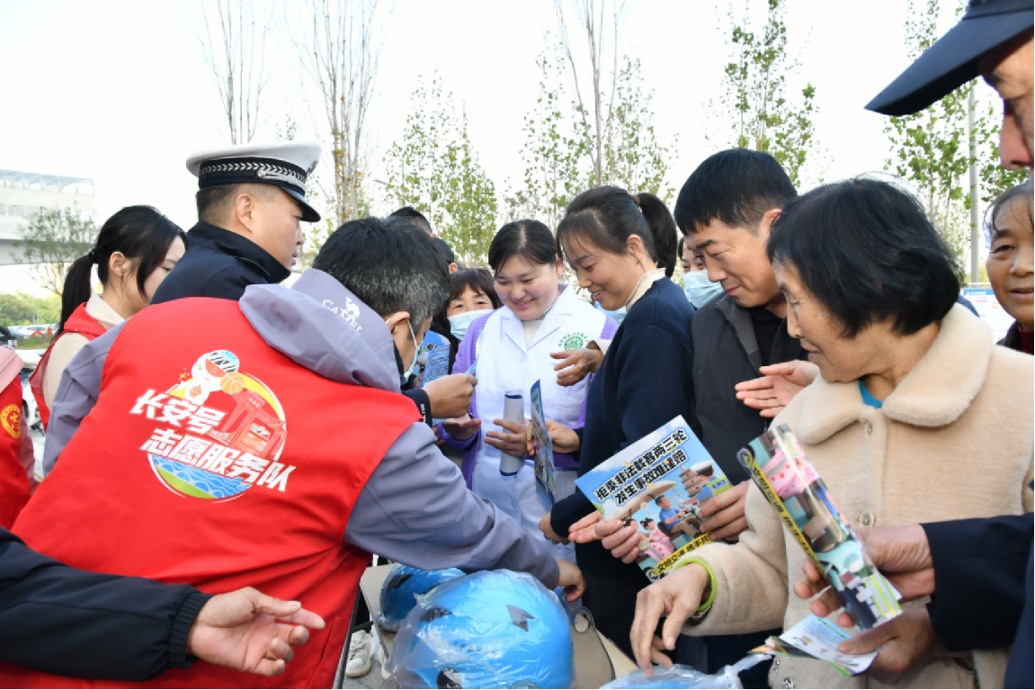“接送孩子的家长,千万别闯红灯、逆行,一定戴好头盔,给孩子做好榜样……”交通安全展台前群众也是络绎不绝,工作人员通过交通标志图解、典型事故案例分析,向群众普及交通安全法规,并重点讲解了非机动车出行、行人安全等注意事项。