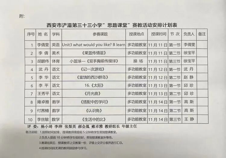 春华秋实,磨砺成长。为进一步深化学校“思路课堂”教学模式改革,搭建教师专业成长的竞技舞台,一场旨在“聚焦课堂、提质增效”的教学盛会——西安市浐灞第三十三小学赛教活动,于2025年11月11-11月14日如期进行。这不仅是一次教学技艺的比拼,更是一场教育智慧的碰撞。