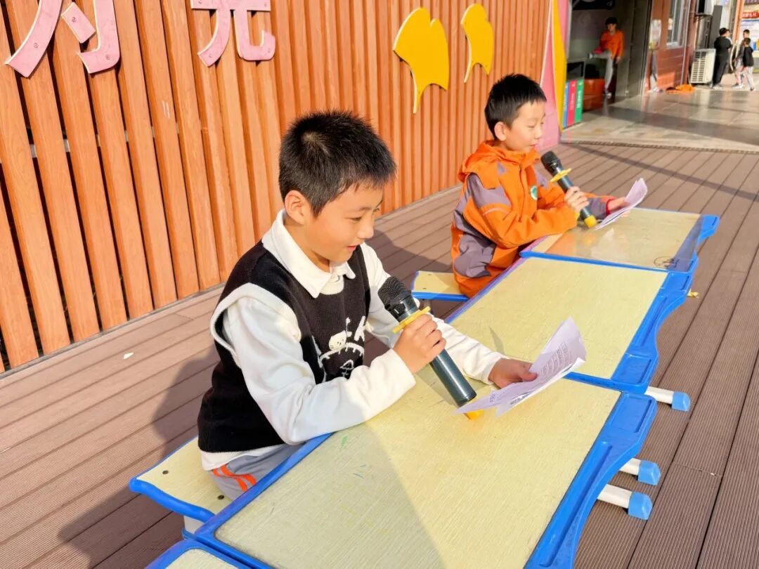 草坪上,同学们席地疾书,将赛场点滴与拼搏瞬间化作文字,主持人实时宣读,为热烈的赛场增添了一抹温情亮色。
