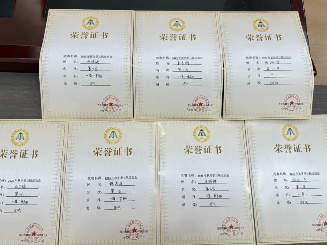 夕阳为操场镀上一层温柔的金光,随着最后一组长绳落地,本次“三跳”运动会的所有赛事圆满结束。校领导为获奖班级和个人逐一颁发荣誉证书。一张张证书凝结着汗水与坚持,获奖学子笑容灿烂,台下掌声与欢呼声久久回荡,见证着少年们的成长与荣光。