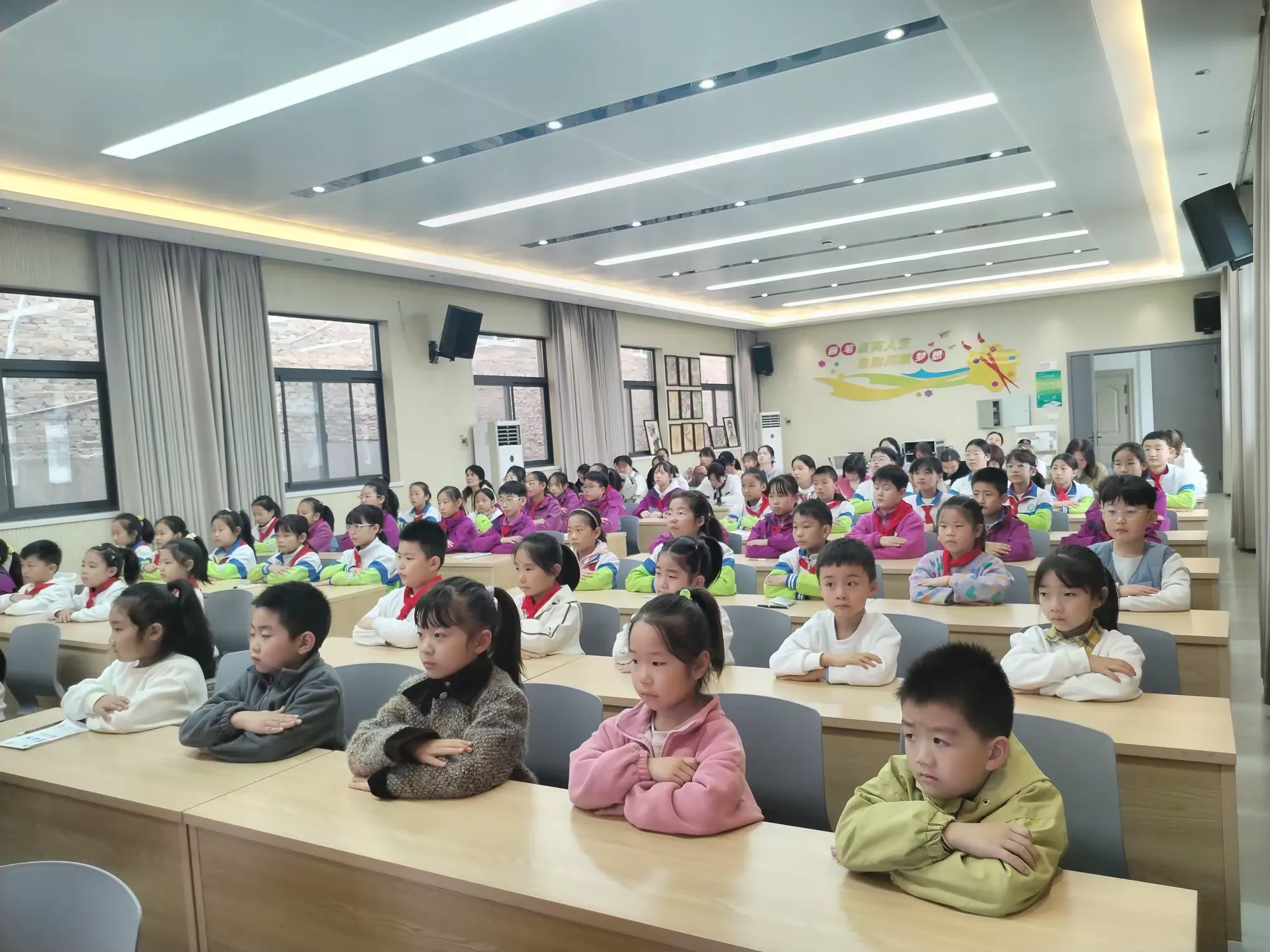 语文教师代表张莹老师分享了整本书阅读教学的实用方法,为老师们提供了专业指导;五年级 3 班李梦琪同学作为学生代表宣读《阅读倡议书》,用稚嫩而坚定的声音发出阅读号召,赢得全场热烈响应。