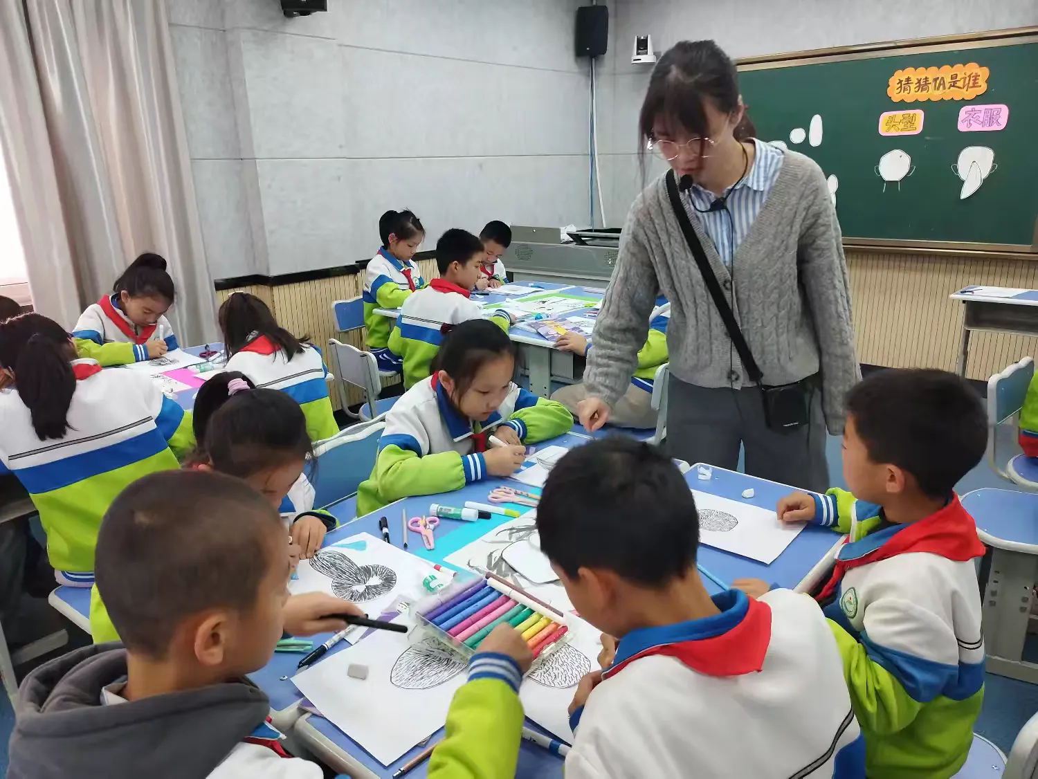 吕姝漫老师执教的美术课《猜猜我是谁》,环节设计清晰有序,课堂互动形式丰富,通过“描述特征猜同学”“小组讨论创作思路”等活动,充分调动学生参与热情,氛围轻松活跃。学生作品创意十足,能运用线条、色彩展现人物独特特征,个性鲜明。AI融合拓展颇具亮点,借助图像识别、风格转换工具辅助学生优化作品,拓宽创作视野。整体课程兼顾趣味性与实践性,有效培养学生观察能力和艺术表达力。