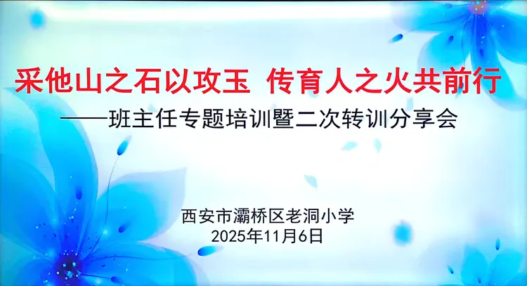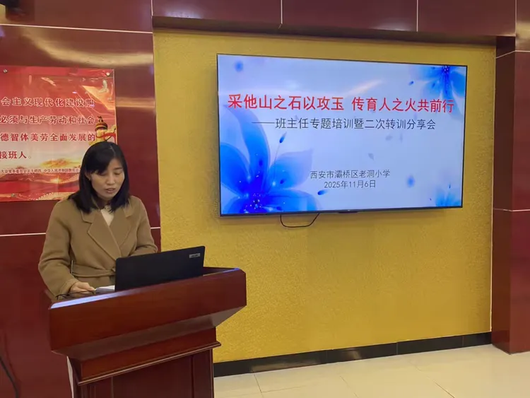 班主任是班级的灵魂,是学生成长路上的引路人,更是学校德育工作的核心力量。为进一步提升班主任的专业素养和管理能力,凝聚育人智慧,11月6日下午,西安市灞桥区老洞小学开展班主任专题培训暨二次转训分享会,全体班主任齐聚一堂,共赴一场以爱为基、以智为翼的育人之约。