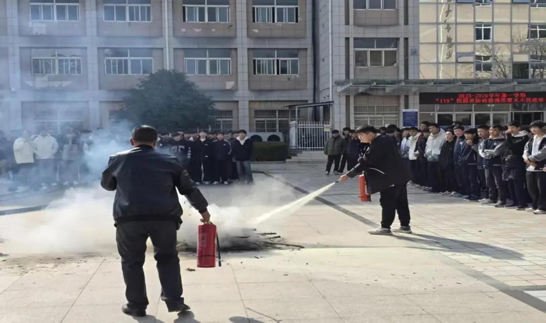 狄寨派出所联合西安铁道技师学院开展校园消防演练。演练模拟教学楼电器短路引发“火情”,师生在民警和安保人员引导下迅速疏散至安全区域。民警现场讲解灭火器使用方法,邀请师生实操体验,并展示消防服、空气呼吸器等专业装备,增强了师生对消防工作的直观认识,提升了校园整体防控能力。