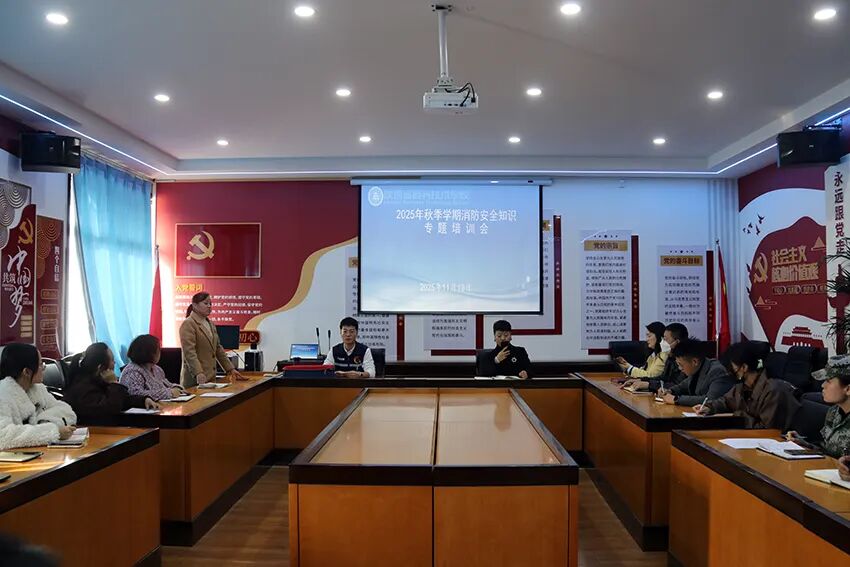 安全是校园生活的基石,消防安全更是关乎每个人生命财产安全的“必修课”。为切实提升全体师生的消防安全意识和应急处置能力,近日,陕西省商务技术学校特别邀请到消防特级讲师张琨,为大家带来了一场干货满满、实用性极强的消防知识宣讲活动,校党支部许娜书记、副校长陈永宁、刘文军莅临培训现场,本次培训会由副校长张晓莲主持。