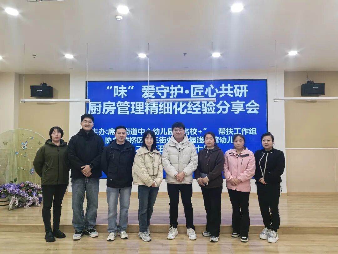 为推动“名校+”厨房管理高质量发展,分享和交流食堂管理工作经验,2025年11月7日,西安市灞桥区席王街道中心幼儿园“名校+”、帮扶工作组在吉的堡浅水湾幼儿园进行了厨房管理精细化经验分享会。席王街道中心幼儿园、吉的堡浅水湾幼儿园、启智幼儿园、滨河状元集幼儿园、滨河万象幼儿园、汉德姆幼儿园厨房负责人齐聚一堂,共同探讨厨房管理的奥秘。