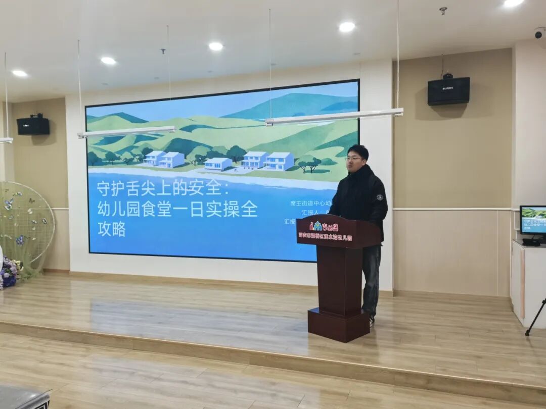 席王街道中心幼儿园牟鑫阳现场“传经送宝”,围绕食堂管理分享实用妙招。进货查验严守食材安全关,从源头保障品质;菜品加工精雕细琢,力求色香味俱全;三账核对精细入微,让账目管控一目了然。