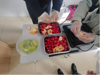 活动现场,孩子们在家长的指导下,先将各种水果洗净,然后小心翼翼地将水果用竹签串起来。“串糖葫芦时要注意安全,竹签的尖端不要对着自己和其他同学。”家长志愿者们耐心地提醒着孩子们。孩子们两人一组,互相配合,将山楂、草莓、葡萄等水果巧妙地搭配在一起,色彩斑斓,令人垂涎欲滴。