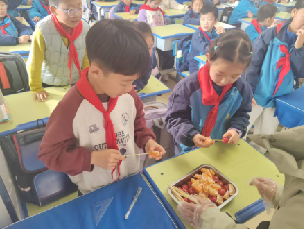 制完成后,孩子们迫不及待地品尝自己的劳动成果,脸上洋溢着满足和喜悦。“我自己做的糖葫芦特别甜!”一位同学兴奋地说。