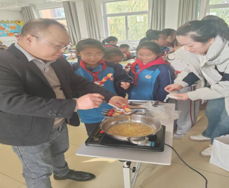 近日,西安市未央区徐寨小学四年级二班教室内欢声笑语,香气四溢。一场以“品冬日甜蜜,串趣味童年”为主题的家长进课堂活动正在这里热烈开展。本次活动邀请到了班级里几位擅长烹饪的家长,带领孩子们亲手制作冰糖葫芦,体验传统美食的制作乐趣。
