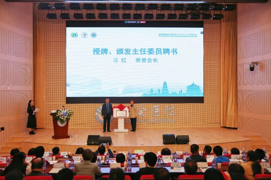 李蓉秘书长宣读了风湿免疫专业委员会任职文件:西安市红会医院杨西超主任医师担任主任委员;白洁、霍爱鑫等19名专家担任副主任委员;牛敏担任委员会秘书长;同时选举产生了安琪、白琳等69位专家担任常务委员。习红荣誉会长、郝庆玉会长、李蓉秘书长依次为主任委员、副主任委员及秘书长颁发聘书并授牌。
