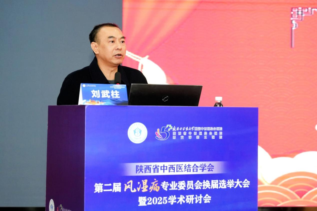 陕西省中西医结合医院(西安市第五医院)党委书记刘武柱介绍了陕西省中西医结合医院(西安市第五医院)风湿病学科在中西医结合诊疗方面的现状与未来,并表示作为主委单位,鼎力支持专委会及杜娟丽主委工作,期望专委会借助学会搭建的平台优势,广泛协作与交流,推动风湿病学科中西医融合高质量发展。