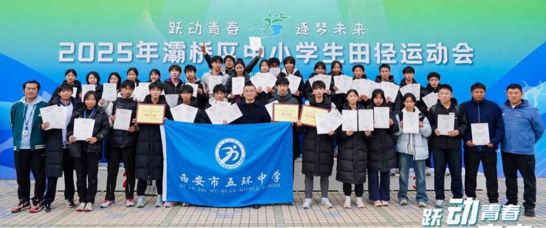 在刚刚落幕的2025年灞桥区中小学田径运动会上,西安市五环中学体育健儿以绝对实力震撼全场!初中组勇夺团体总分第一名,高中组斩获团体总分第二名,同时荣获体育道德风尚奖。双线捷报频传,再次彰显我校体育教育的卓越成果!