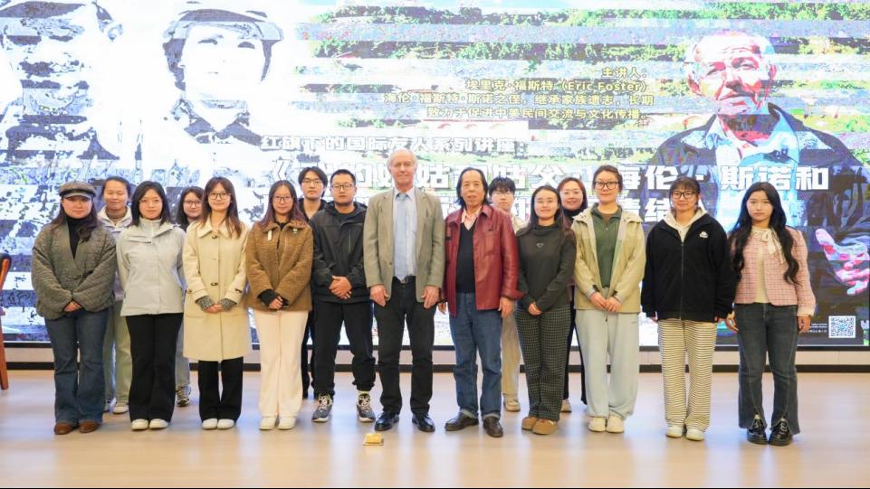 11月13日下午,“红旗下的国际友人系列讲座”首场活动在西京学院举行。活动主题为《我的姑姑和姑父:海伦・斯诺和埃德加・斯诺的中国情结》,由陕西省斯诺研究中心与西京学院外国语学院联合主办。海伦・斯诺侄子埃里克・福斯特担任主讲,西京学院外国语学院院长胡宗锋教授主持。约300名师生参加。
