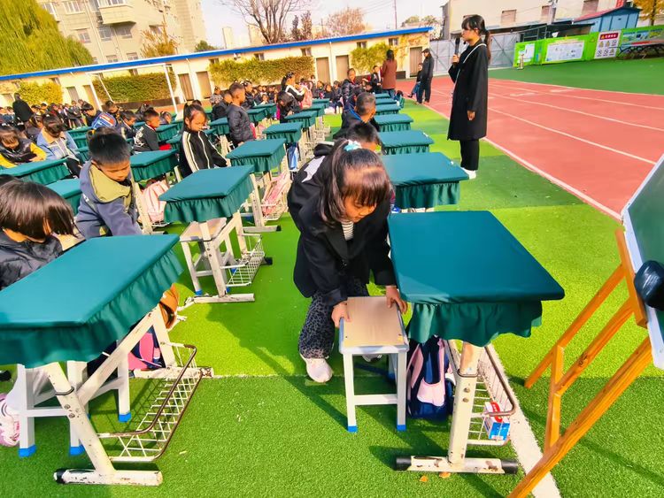 生活技能展示环节同样精彩纷呈。学生们现场演示“整理书包”“摆放文具”“整理仪容仪表”等动作。书本分类入袋,文具归位有序,桌椅摆放整齐,仪容仪表讲究,小小的身影忙碌而专注,用实际行动诠释“物品归位、桌面整洁”的良好习惯。