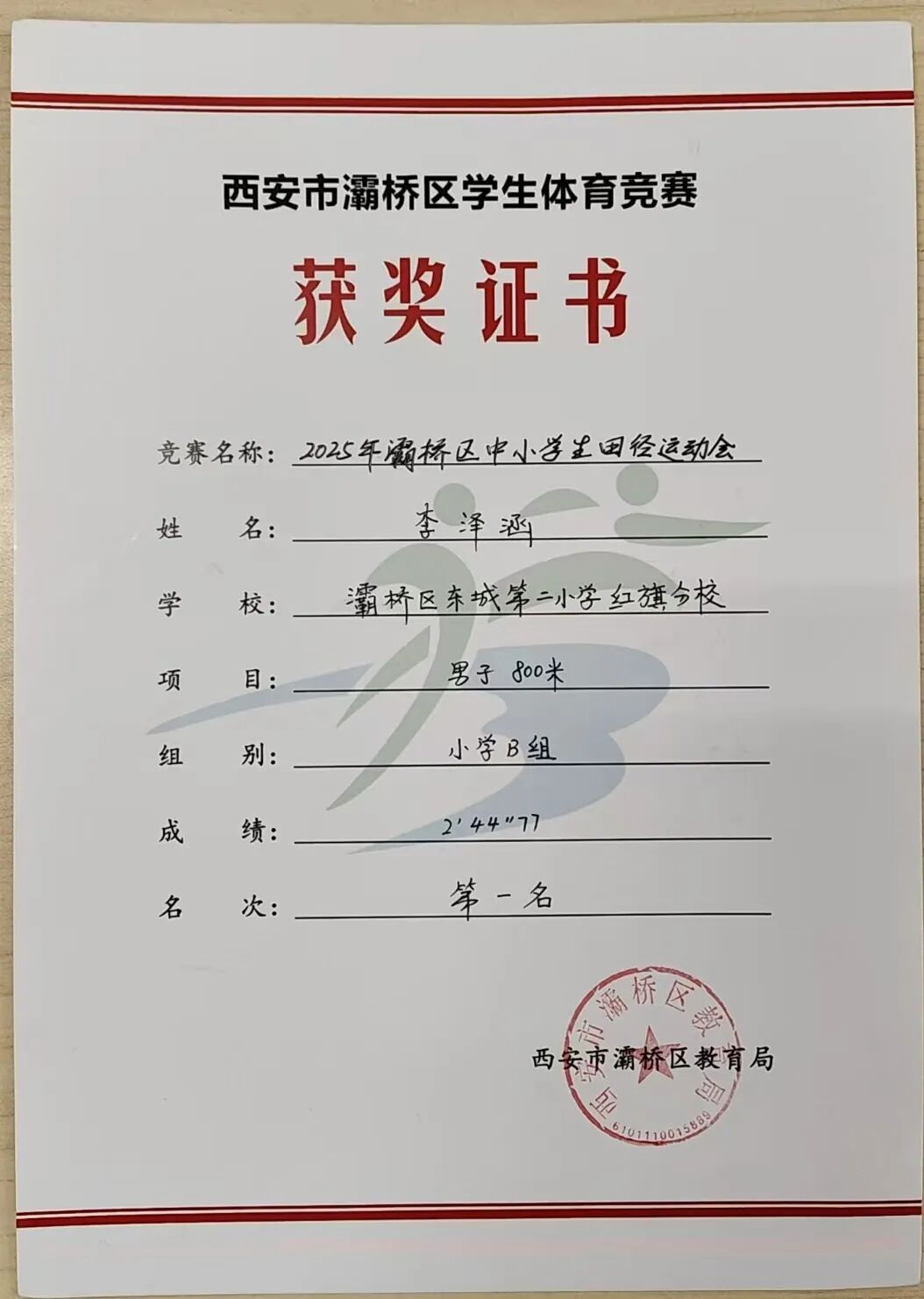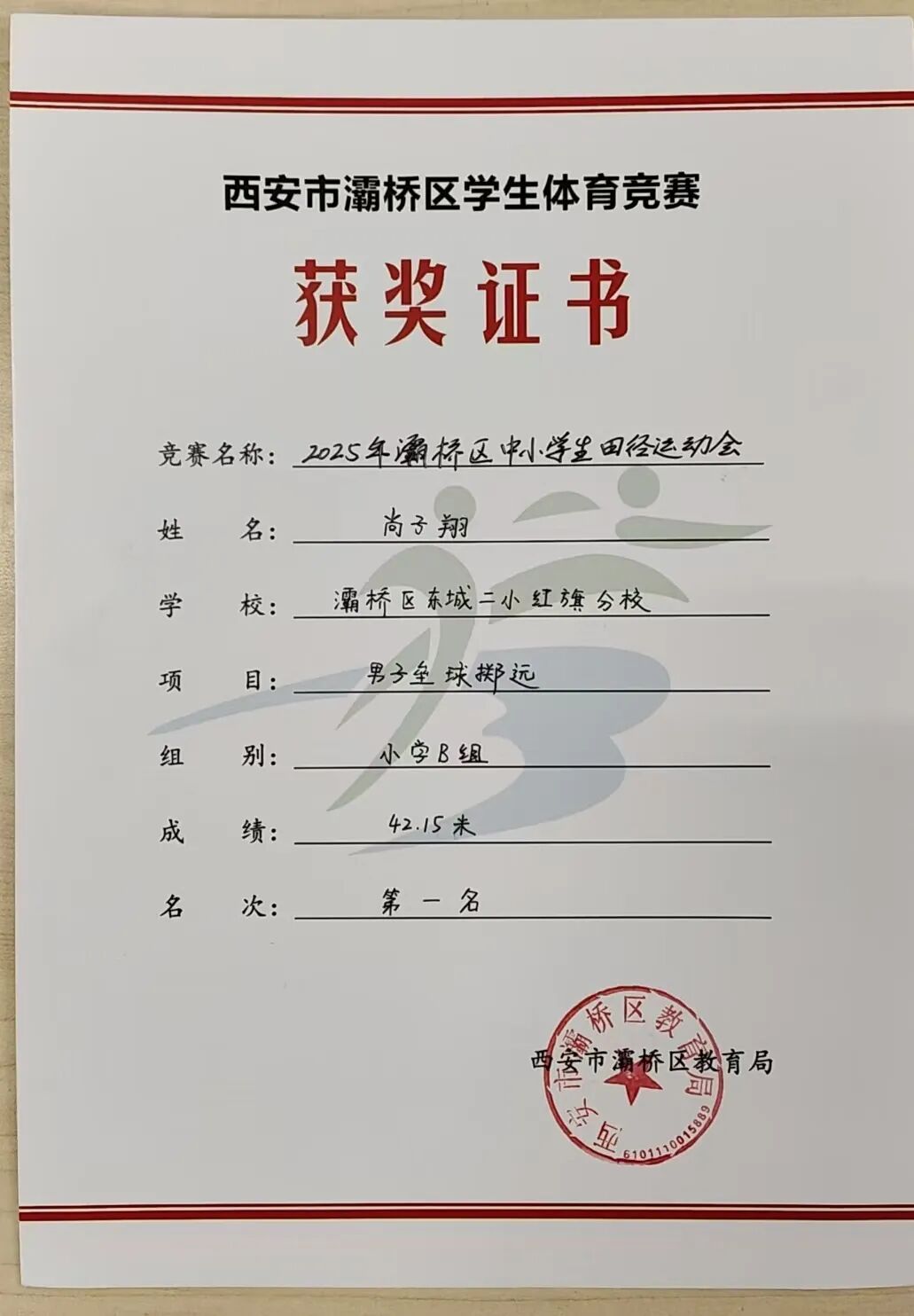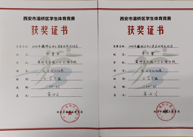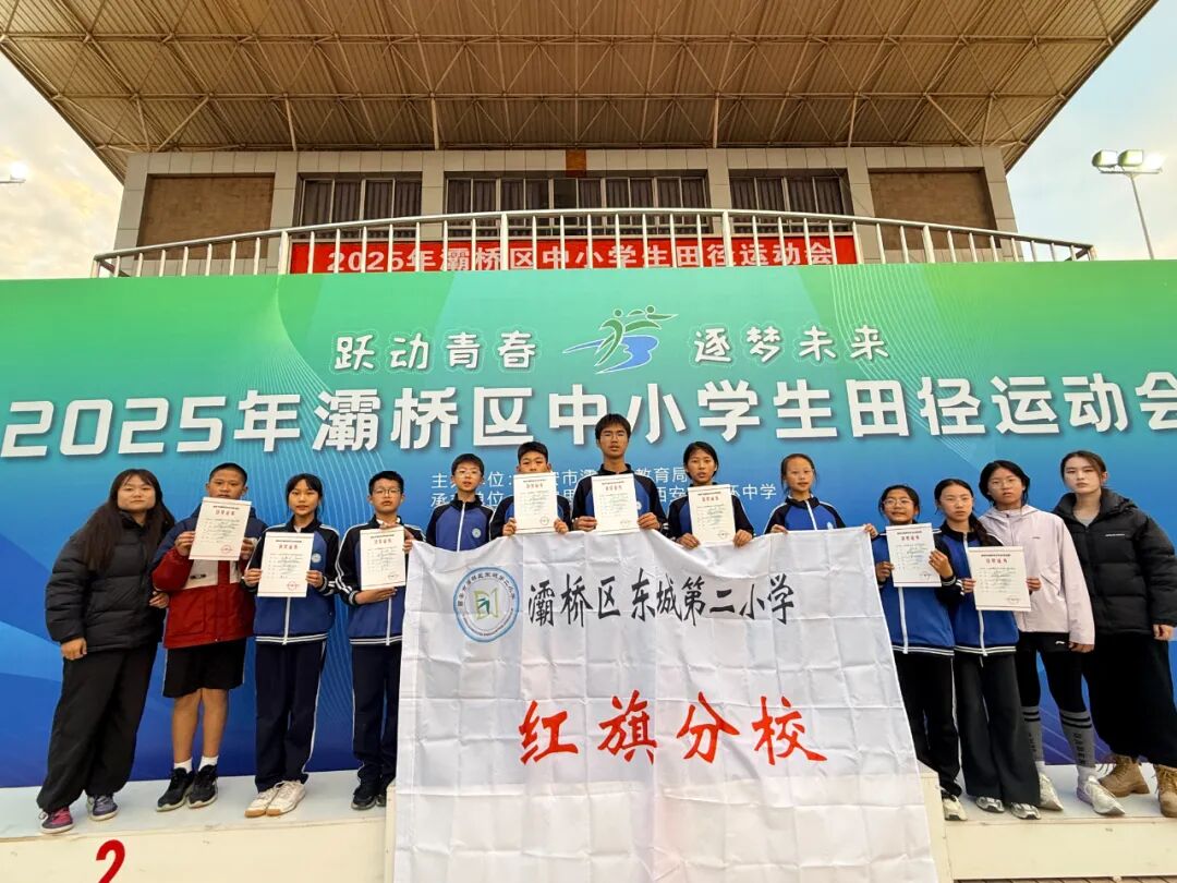 在刚刚落幕的灞桥区2025年中小学生田径运动会中,东城二小红旗分校的运动健儿们奋力拼搏,载誉而归,最终荣获小学B组“团体总分第二名”的优异成绩,20名参赛队员获奖30人次。
