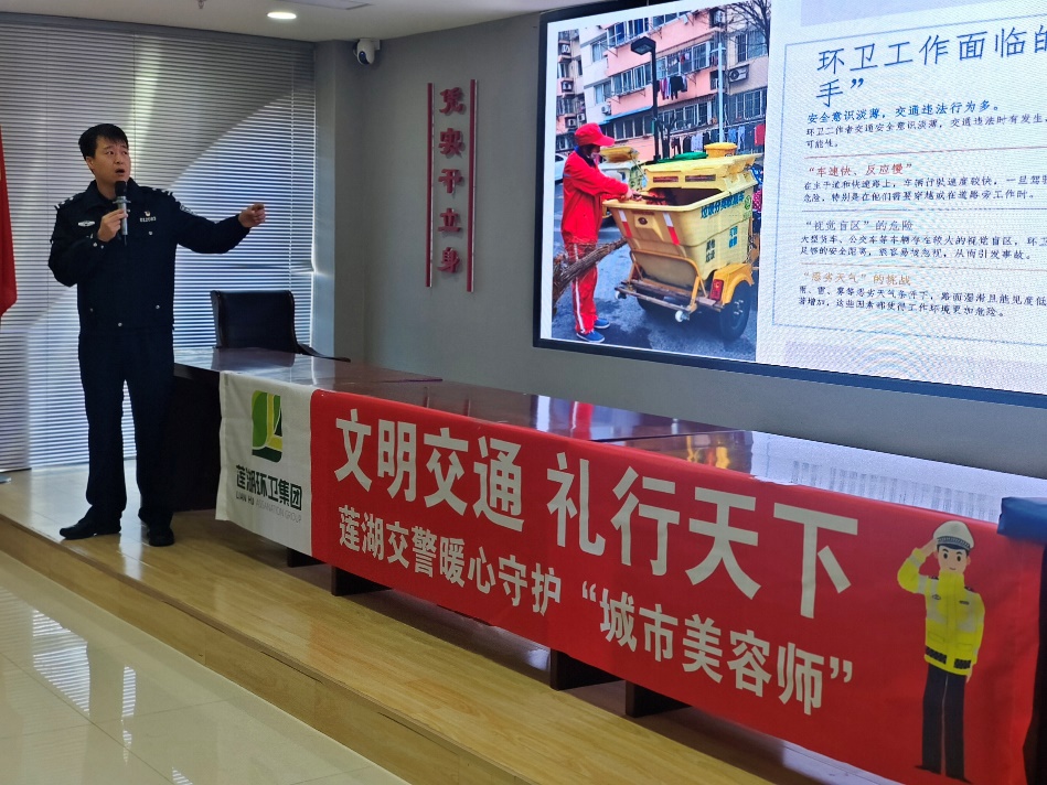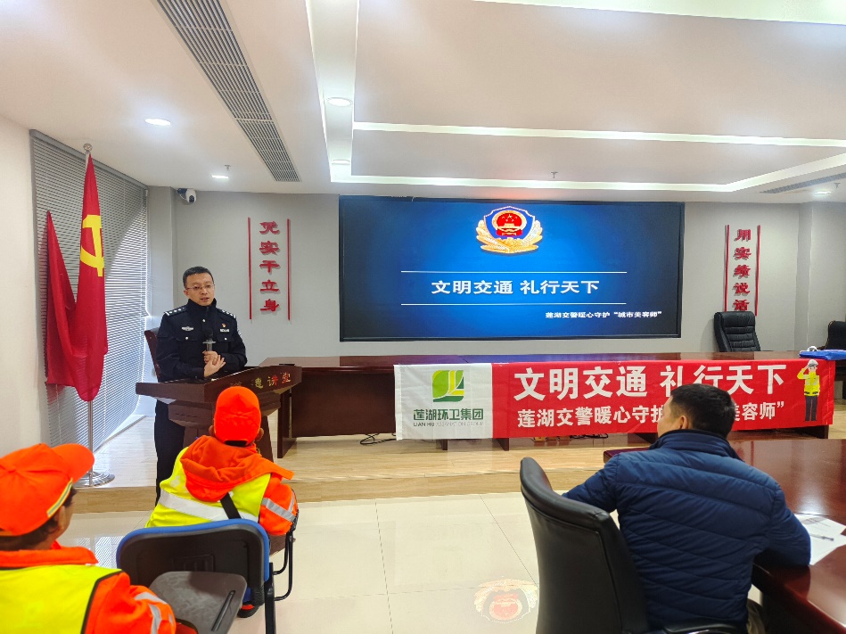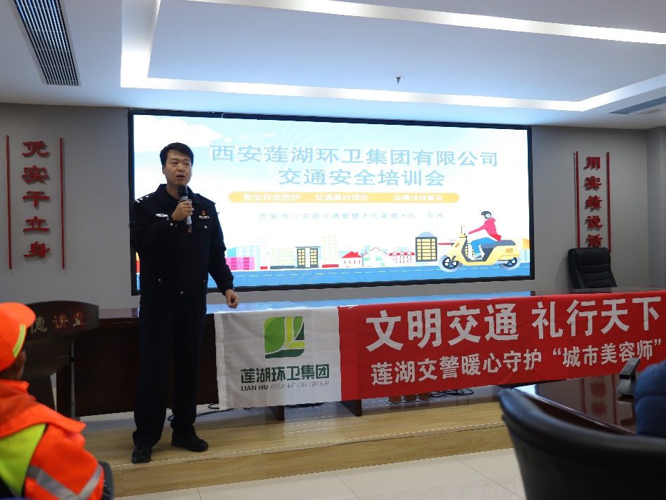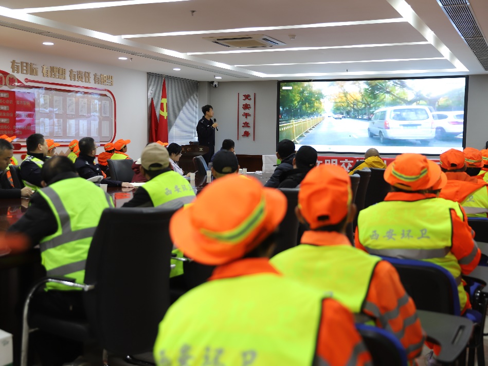阳光讯(记者 郭璟霖 通讯员 雷腾)11月18日,西安市公安局交通管理支队莲湖大队土门中队联合辖区土门街道办事处及莲湖环卫集团,在土门街道办会议室举办“文明交通,礼行天下——莲湖交警暖心守护‘城市美容师’”交通安全宣讲活动。