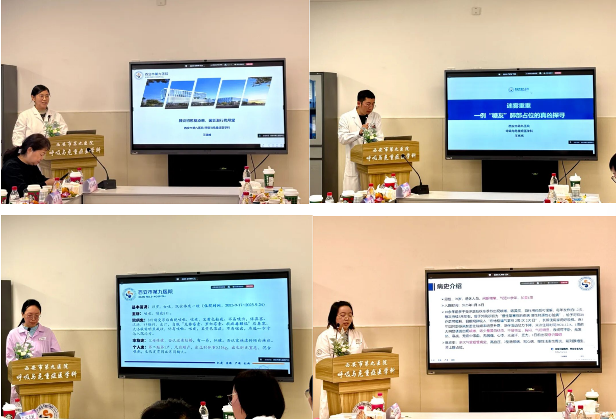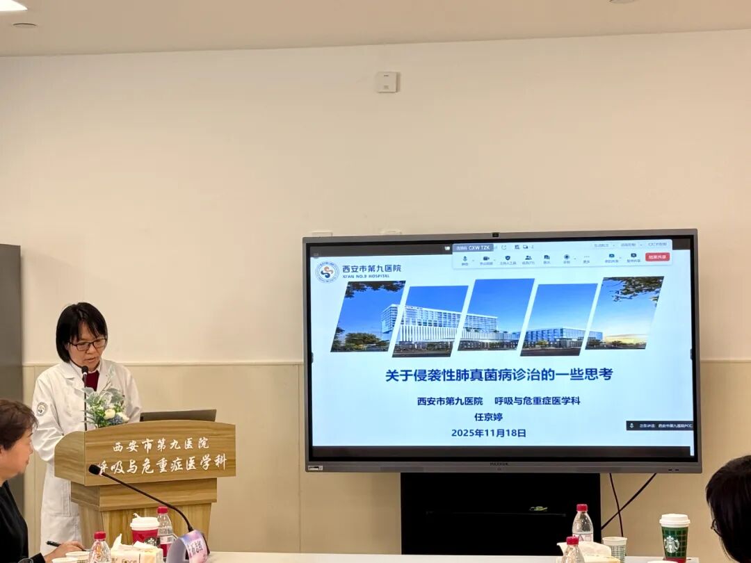 本次会议由西安市第九医院呼吸与危重症医学科魏霞主任主持,得到了院内影像科、药剂科、检验科等多科室的协同支持,更汇聚了西安市各大医院呼吸领域的顶尖专家与骨干。会议特邀西安交通大学第二附属医院呼吸与危重症医学科方萍教授带来《治疗CRO的新型抗生素介绍》主题分享,深度解析前沿药物研发与临床应用进展;西安市第九医院任京婷副主任医师则以《关于侵袭性肺真菌病诊治的一些思考》为题,结合临床实践分享宝贵诊疗经验。两场报告兼具专业性与实用性,引发全场共鸣。同时该科医师分享了四例临床病例,内容精彩,得到全场专家的热烈讨论。