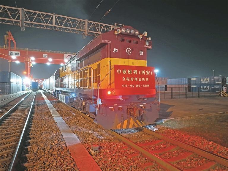 11月19日凌晨,随着一声汽笛长鸣,满载汽车配件、家电等货物的X8153次中欧班列从中国铁路西安局集团有限公司(以下简称“西安铁路局”)西安国际港站驶出,开往捷克布拉格。这标志着首趟全程时刻表中欧班列(西安—布拉格)开行,全程时间仅11天4小时,较普通班列运输效率提升约30%。