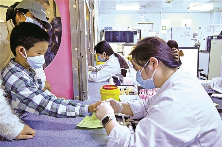 11月14日,西安市儿童医院的工作人员在进行传染病快速筛查。