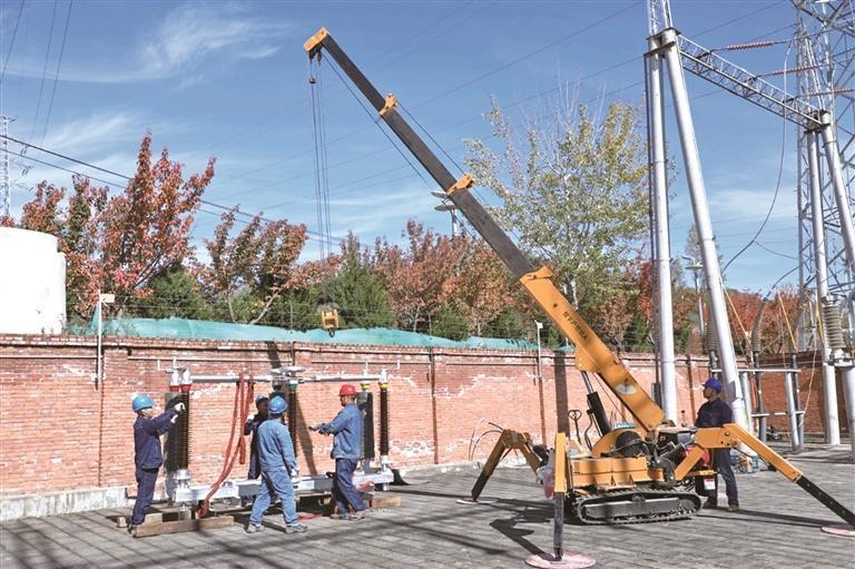 10月29日,国网陕西电力宝鸡供电公司电力人员在110千伏太白变电站开展融冰刀闸安装作业(资料照片)。 记者 肖倩摄