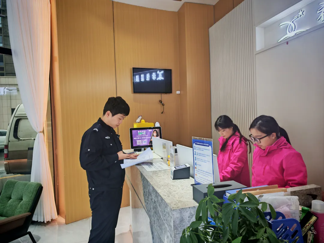 席王派出所聚焦“九小场所”,排查消防设施是否完好有效、疏散通道是否畅通、电气线路是否存在私拉乱接等问题。民警现场指导整改,并向从业人员讲解火灾预防与初期扑救知识,提升场所自查自防能力。
