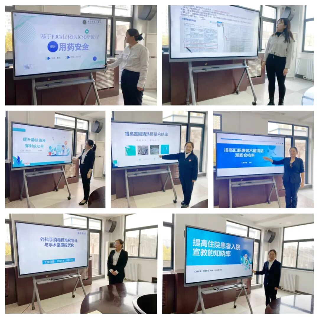 会上,护理人员们分享的15个优质案例,从“提高入院患者宣教知晓率、降低中线导管并发症的发生率、提高危重患者口腔清洁率” 等多个维度精彩呈现;从“优化HAIC化疗流程提升用药安全、提升结核病患者痰标本留取率、内瘘提升穿刺成功率与维护质量”的创新措施;从“提高器械清洗质量合格率”的实践探索,到把“人文关怀”融入日常护理的暖心举措……每一个案例都是临床一线的深耕细作,每一组数据都见证着护理团队的匠心坚守。