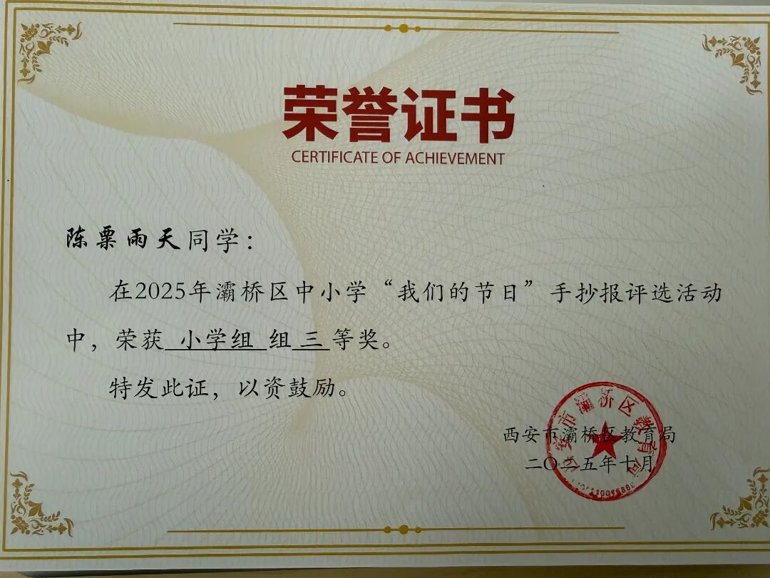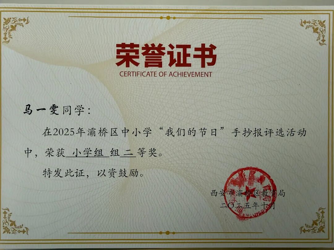 捷报频传,誉满校园。在灞桥区“我们的节日”手抄报评选活动中,东城第二小学喜获佳绩!三位教师荣获优秀指导教师,三名学生荣获一等奖,一名学生荣获二等奖,一名学生荣获三等奖。
