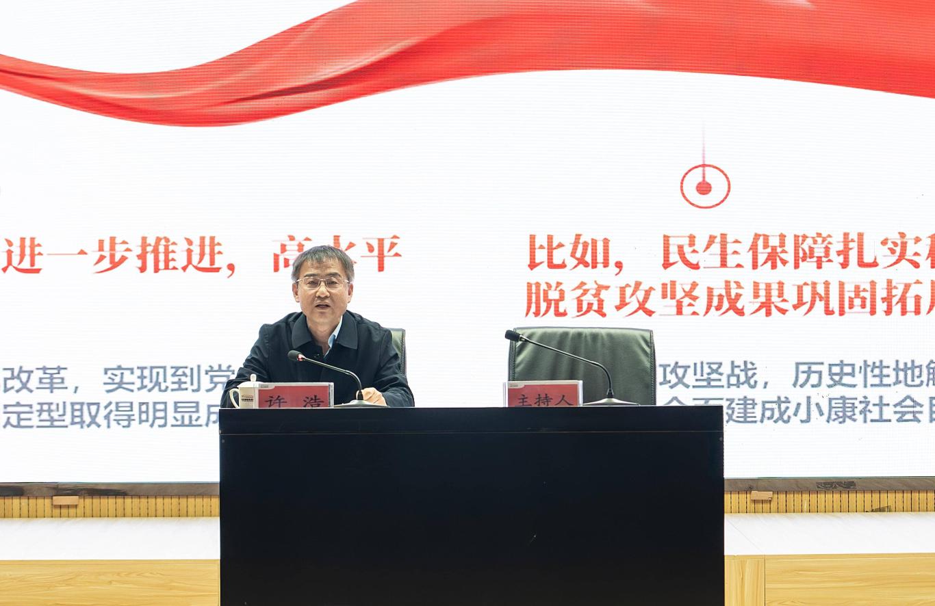 为推动党的二十届四中全会精神在基层落地生根,迅速掀起全区学习宣传贯彻全会精神的热潮,11月20日,西安浐灞国际港举行学习贯彻党的二十届四中全会精神市委宣讲团报告会。西安市委宣讲团成员、市委组织部副部长、市委老干局局长许浩作专题宣讲。