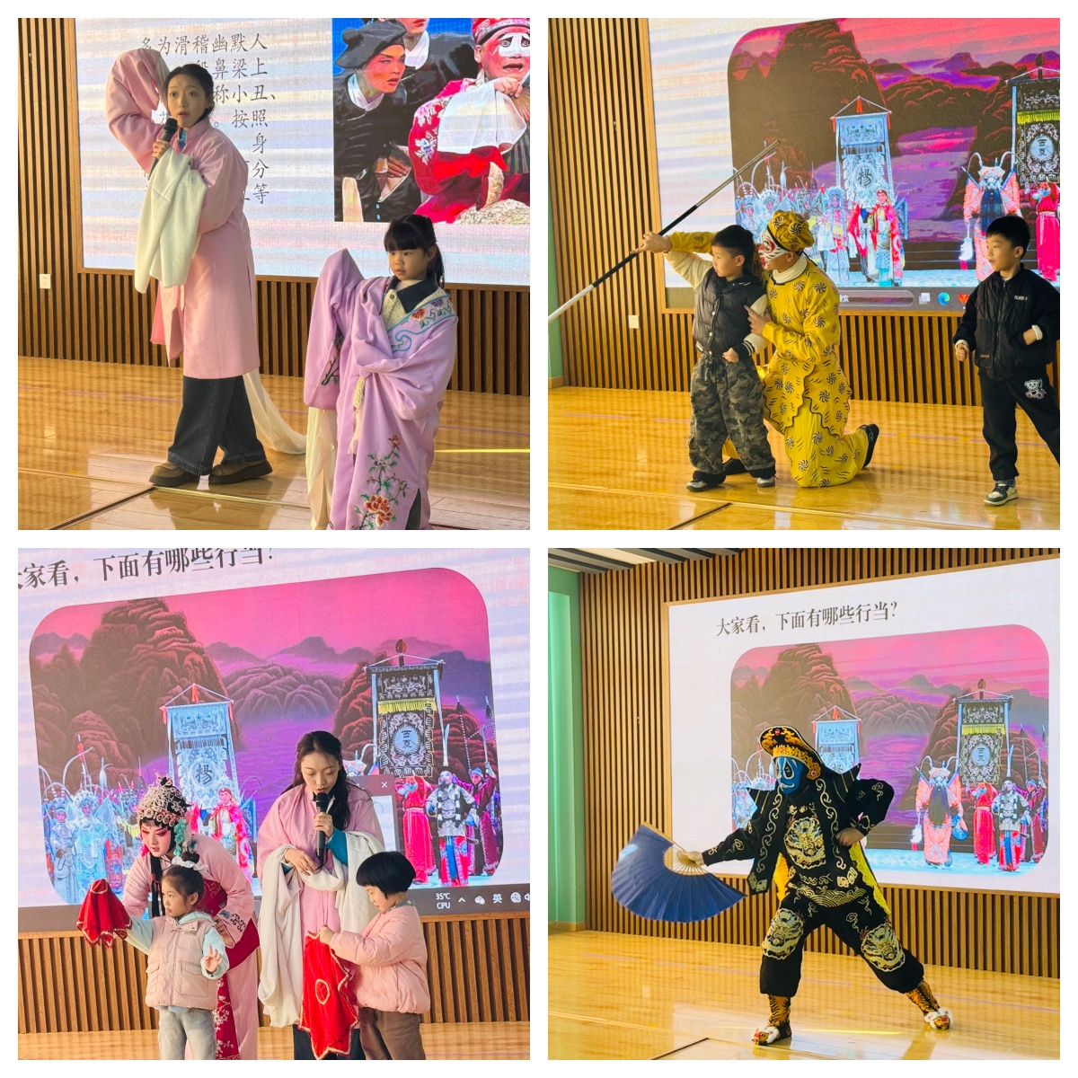 知识学习过后,最令人期待的戏曲欣赏体验环节正式拉开帷幕。伴随着清脆的锣鼓声与悠扬的胡琴声,戏曲老师们身着华丽戏服依次登场,瞬间将孩子们带入五彩斑斓的戏曲世界。