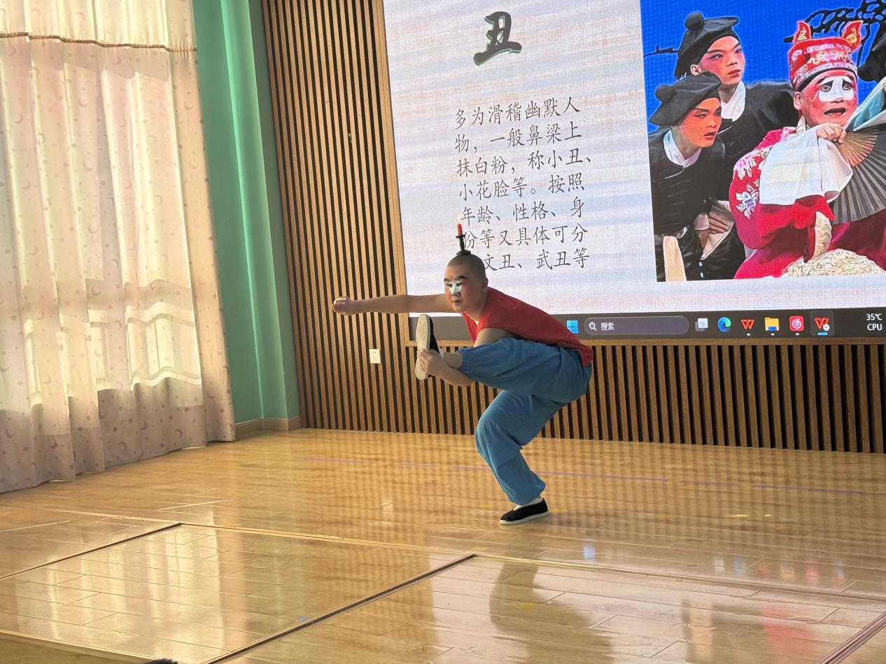 最受孩子们欢迎的当属丑角表演。丑角演员顶着滑稽的妆容,一出场就用夸张的动作和俏皮的语言逗得大家哈哈大笑。他还走下舞台,与孩子们近距离互动,教孩子们做简单的戏曲手势,邀请孩子们一起模仿 “小丑走路”,现场气氛达到高潮。
