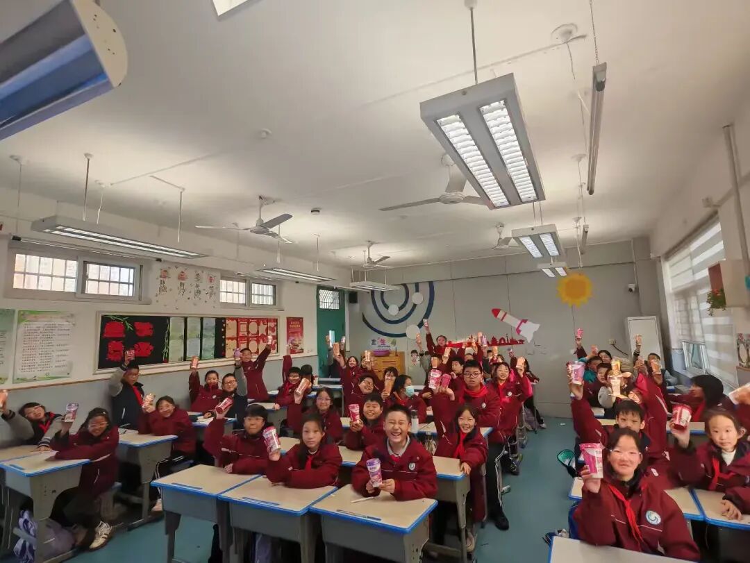 课堂的最后,赵梓涵爸爸还为每个孩子准备了一杯香甜的奶茶。当孩子们接过温热的奶茶,脸上都洋溢着幸福的笑容。这份甜蜜不仅是味蕾上的享受,更承载着赵梓涵爸爸对孩子们满满的关爱。