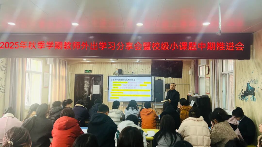 秋意渐浓,研思不辍。近日,西安市灞桥区东城第一小学“2025年秋季学期教师外出学习分享会暨校级小课题中期推进会”如期举行,全体教师齐聚一堂,共赴这场以成长为主题的教研盛宴。会议以“分享赋能、研思共进”为核心,既搭建起外出学习成果的交流桥梁,又为校级小课题后续研究锚定方向,生动彰显了该校“走出去、引进来”的教师培养理念与深耕教研的坚定决心。