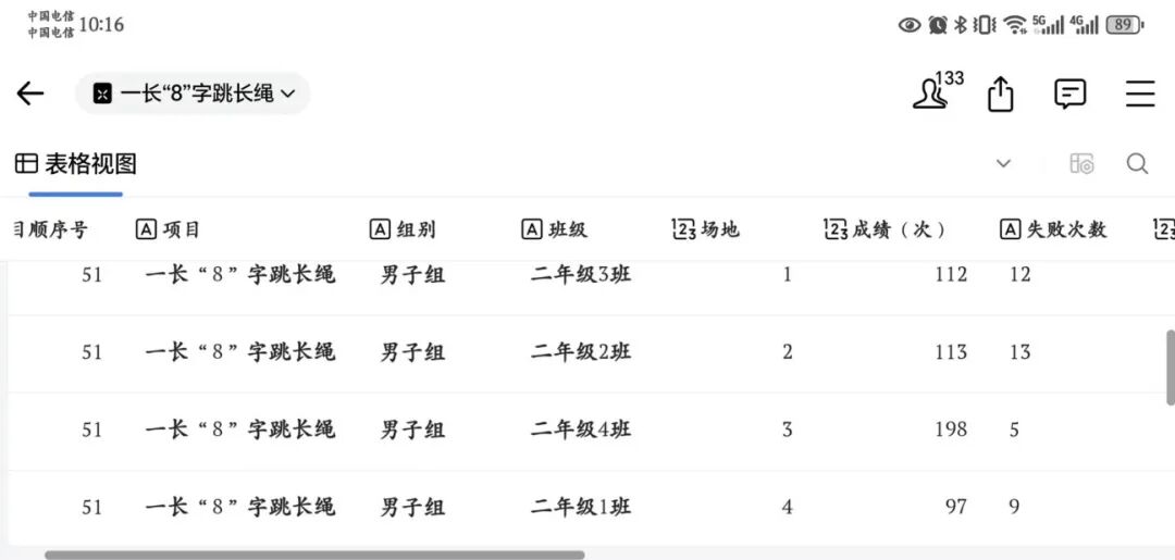 集体项目是团队精神的最佳彰显,数字技术让协作之美更加闪耀。30米跳绳迎面接力,男女队员分列两端,接力棒传递间,跳绳不停、脚步不歇,数字计时器精准记录每支队伍的冲刺时间,赛道上的呐喊与加油声此起彼伏。一长"8"字跳长绳项目,摇绳者稳握绳柄划出优美圆弧,队员们如蝶蹁跹穿梭,三分钟内默契配合连续跳跃,数字屏幕实时累计的团队成绩让大家斗志昂扬。
