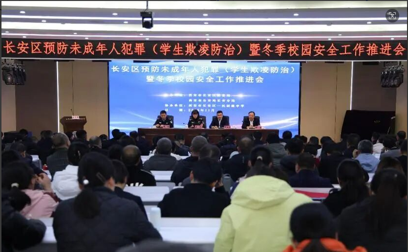 阳光讯 (记者 熊玺 文/图)为切实加强未成年人违法犯罪预防和学生欺凌治理,筑牢未成年人健康成长的安全防线,营造和谐稳定的社会环境,2025年11月20日下午,西安市公安局长安分局联合长安区教育局,组织召开长安区预防未成年人违法犯罪和学生欺凌防治及冬季校园安全工作推进会。会议由区教育局党委委员、副局长辛田虎主持。