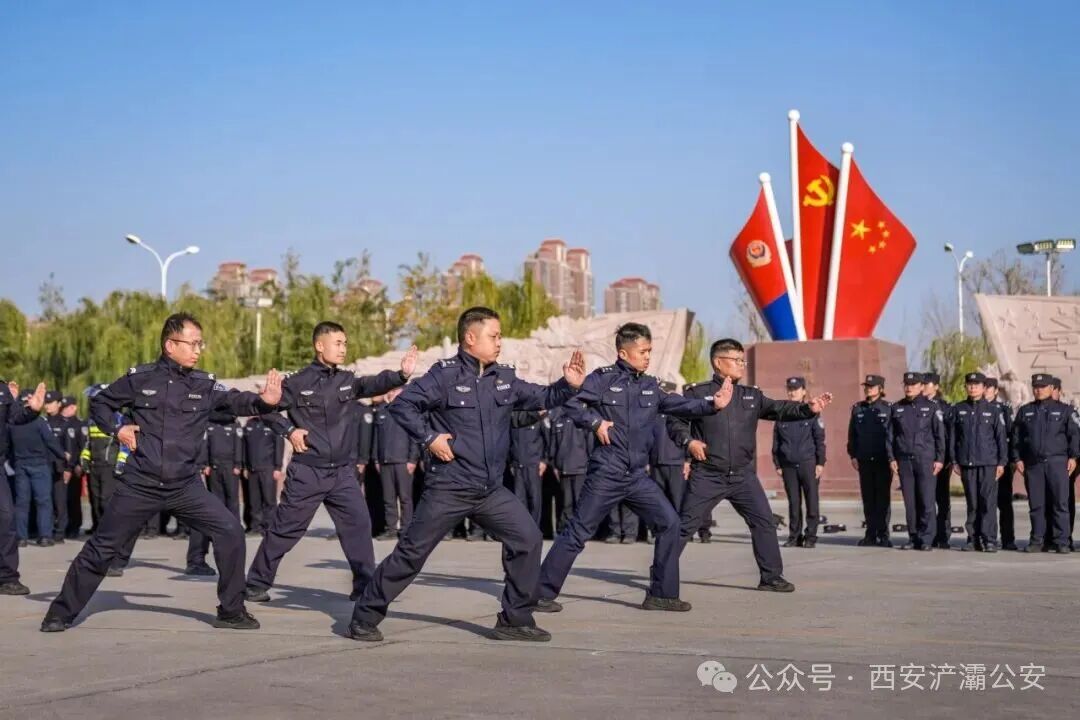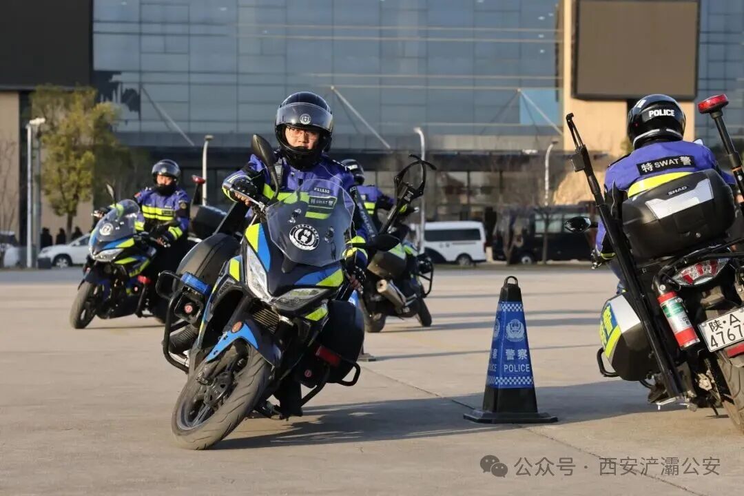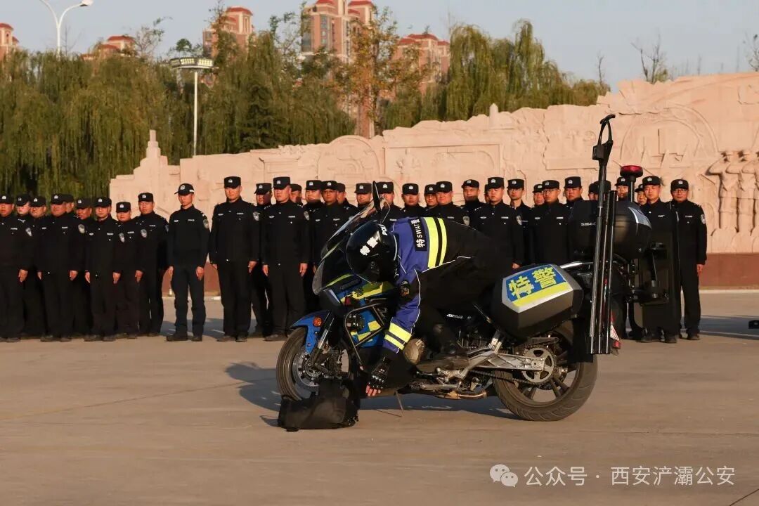 铁骑方队展示了摩托车驾驶技能,先后完成了 8 字绕桩、一字慢桩、综合绕桩及行进中捡包等项目,展现了队员们出色的驾驶技巧、平衡能力及应急处置水平。现反特大队已成立12个铁骑快反点位,围绕案件高发、易发区域进行不间断巡逻,实现快速到达、现场稳控。擒敌拳展示时,指挥员发令后,队员们动作整齐有力,充分展现了自身昂扬斗志与过硬作风。