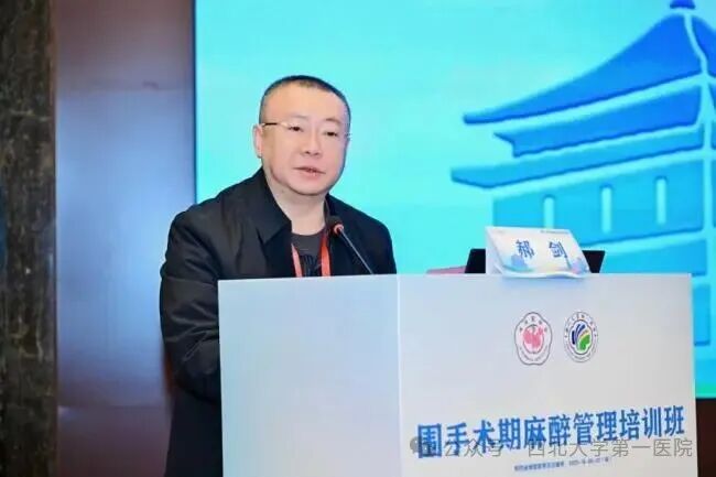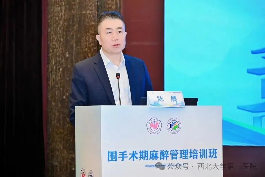 西北大学第一医院党委书记陈晨在会议上致辞,提出麻醉学科作为保障手术安全的核心枢纽,承担着术前评估、术中精准调控、术后快速康复的全程管理重任。期望通过本次围手术期管理培训班,遵循“慎于术前,严于术中,善于术后”的宗旨,推动医疗工作高质量发展,更好地为患者服务。