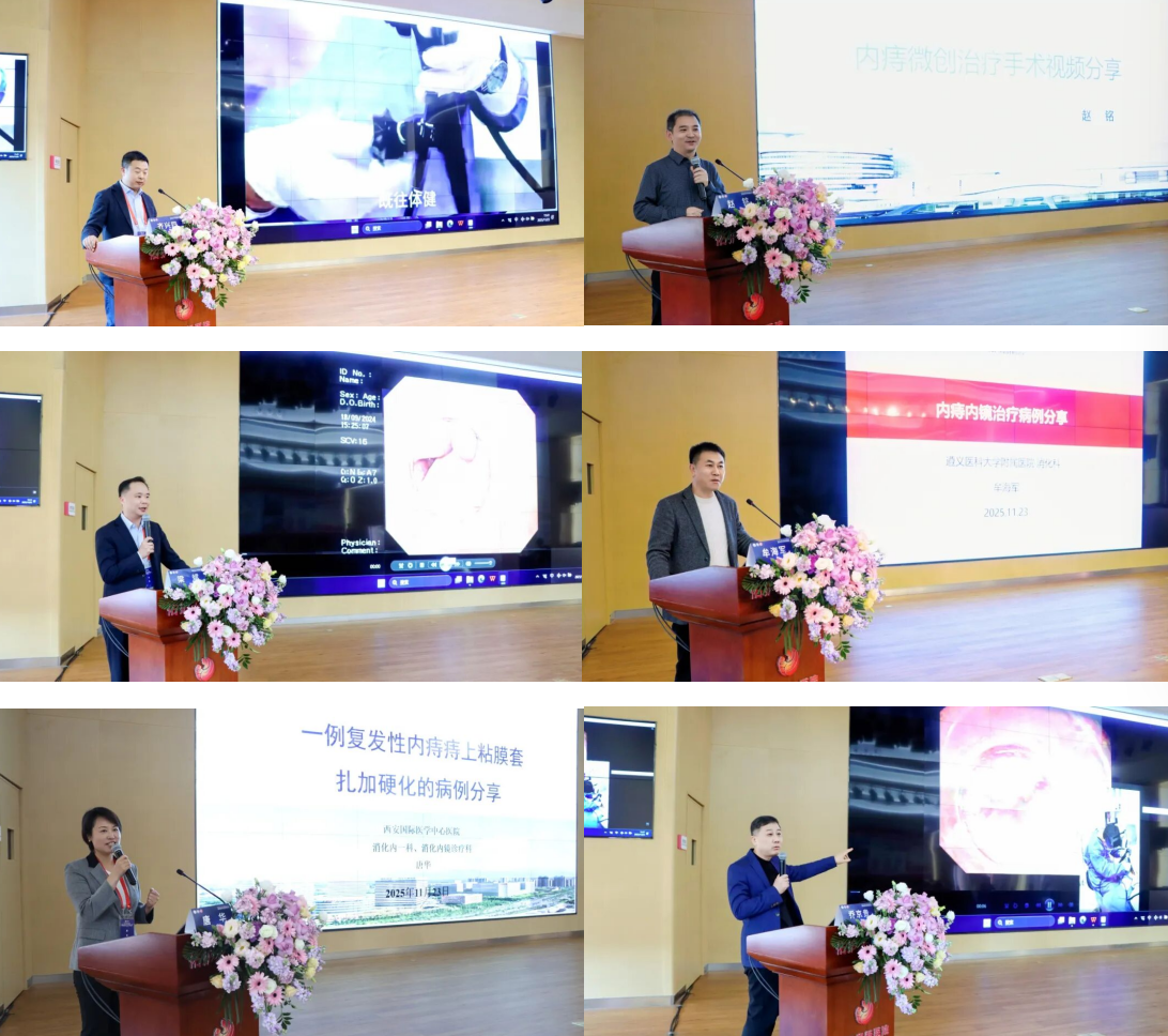 手术视频秀环节,青岛大学附属医院齐兴四教授、遵义医科大学附属医院牟海军教授、德阳市人民医院赵铭教授、西安国际医学中心医院唐华教授、赣州市第五人民医院梁斌教授、西安高新医院乔京贵教授六位专家带来精彩纷呈的手术过程分享,展示6分钟视频,涵盖内痔套扎、硬化剂注射等关键技术。