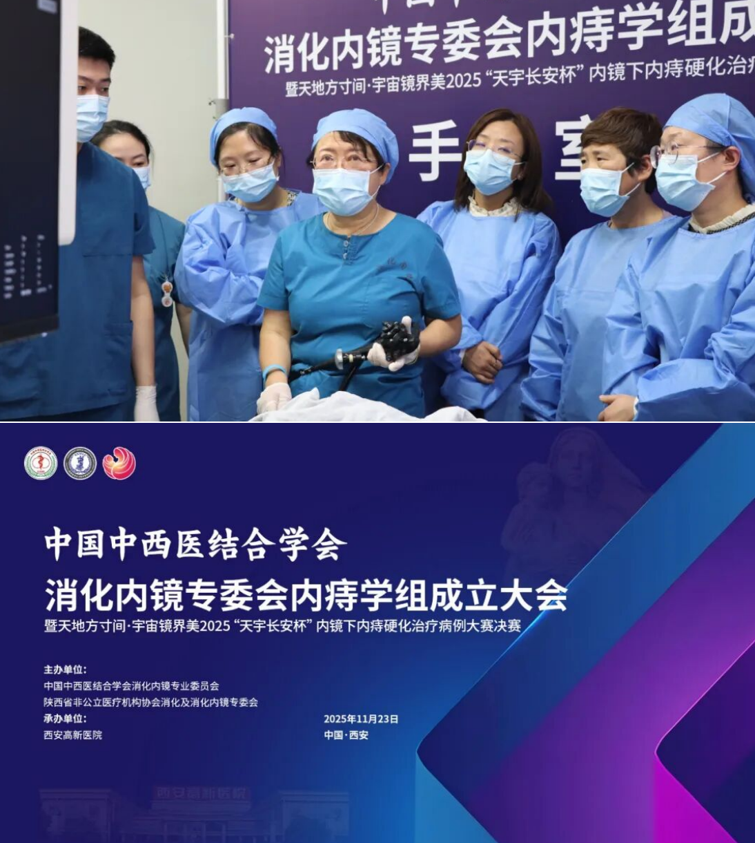 阳光讯(记者 郑亚雷)11月22日至23日,为进一步推动内痔微创诊疗技术的中西医结合发展,促进内镜下硬化治疗的规范化与创新,中国中西医结合学会消化内镜专业委员会内痔学组成立大会暨天地方寸间·宇宙镜界美2025“天宇长安杯”内镜下内痔硬化治疗病例大赛决赛在西安高新医院举办。本次盛会汇聚了国内消化内镜领域的顶尖专家,通过学术讲座、病例大赛、手术视频秀及现场演示等多种形式,全方位展示内痔诊治的最新进展与临床实践。