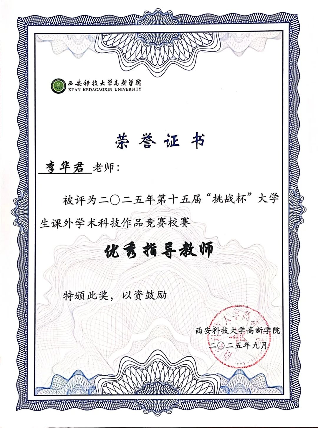 2025年第十三届“挑战杯”全国大学生课外学术科技作品竞赛优秀指导老师;
