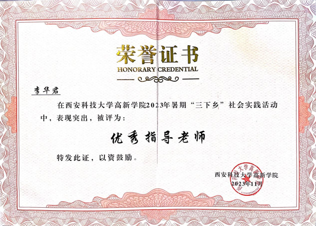 2023、2024年连续两年被评为暑假“三下乡”社会实践优秀指导教师;