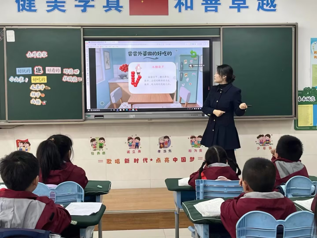 乐昌玲老师《去外婆家》一课别出心裁,让“外婆”通过AI视频亲切邀约,瞬间点燃学生兴趣。